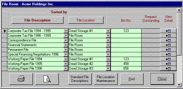 File Room Real time access to file room data by Client and/or by Location - with a facility to request and track File Relocation