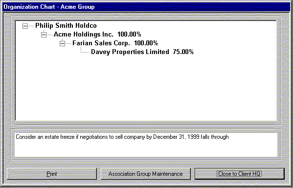 Associated Companies links group members, maintains ownership structure and automatically generates an Organization Chart