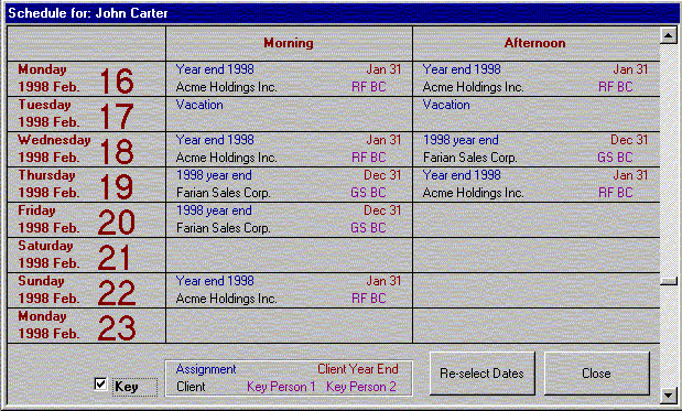 Staff Scheduling Dynamically review free time and allocate Staff to Client assignments.