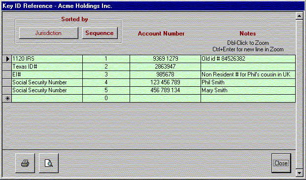 Key ID Reference Tax Reference Numbers, Social Security Numbers, any other key reference data your Clients expect you to know.