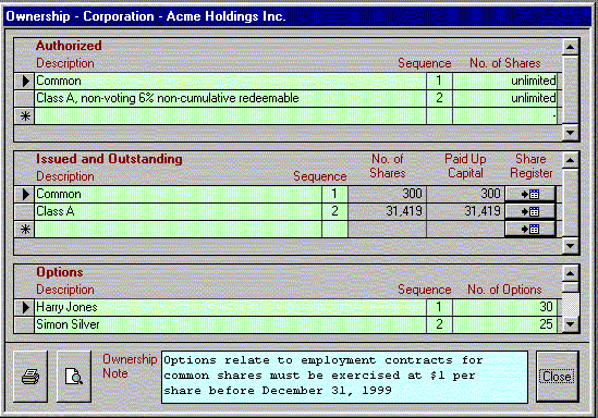Ownership maintains details of share structure including a share register for each class and transaction data. Take a look at the Ownership form. Notice the Share Register drill-down